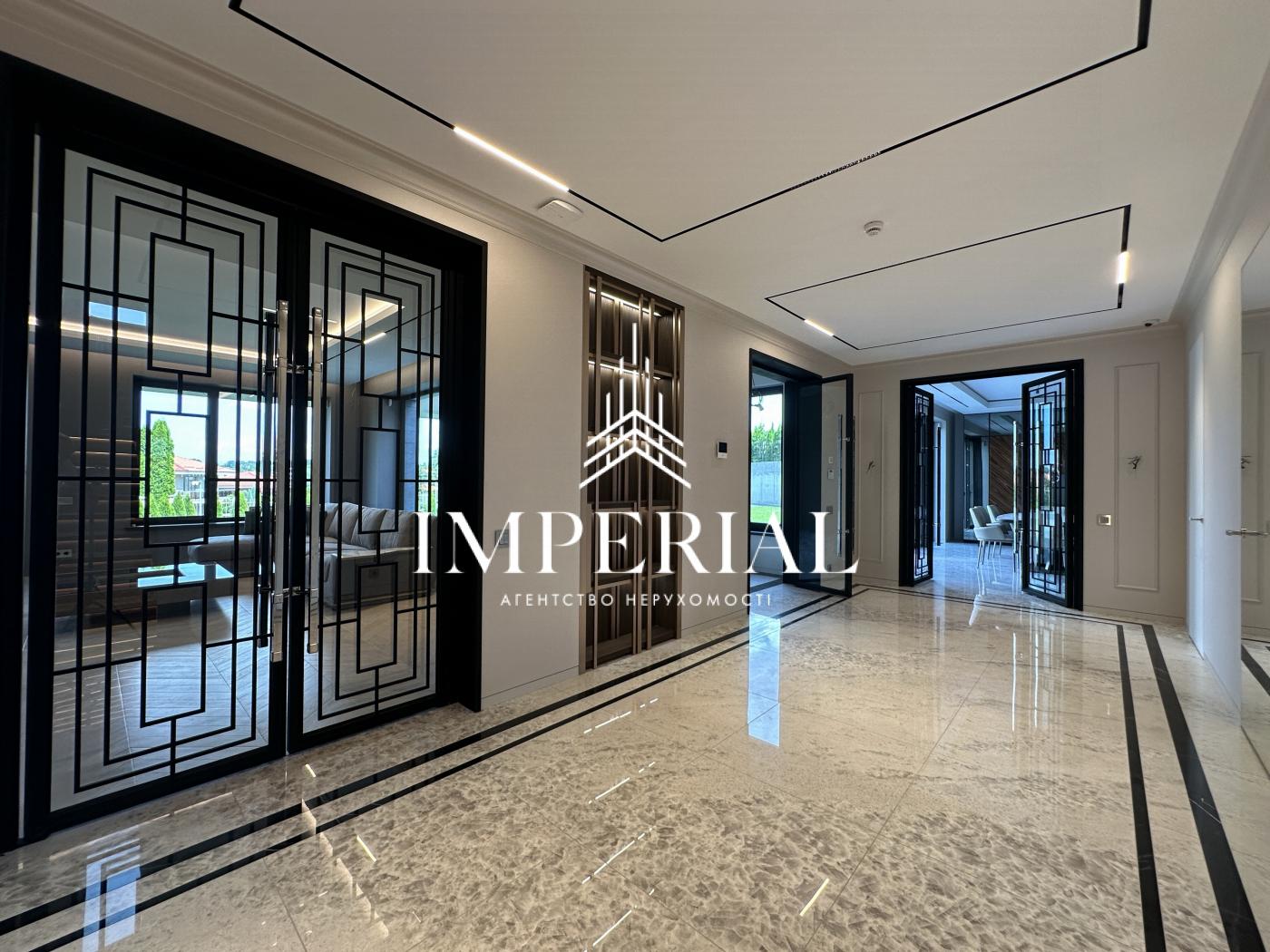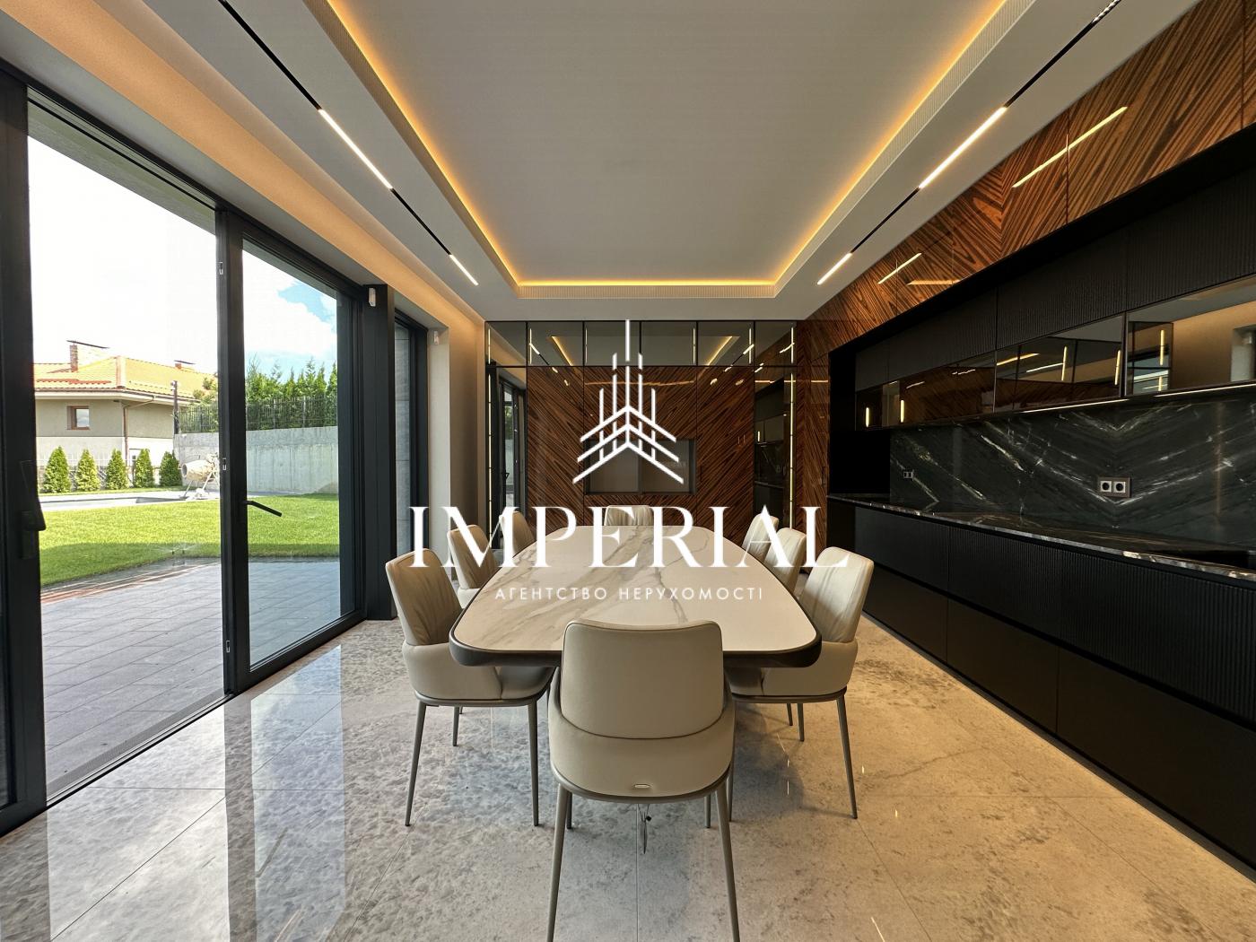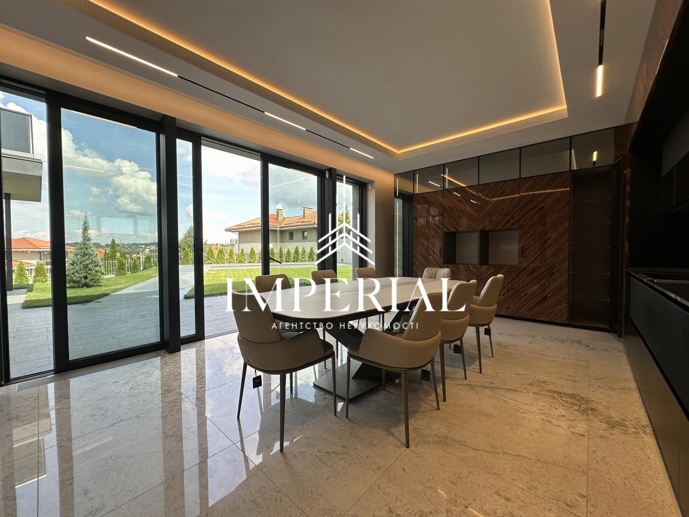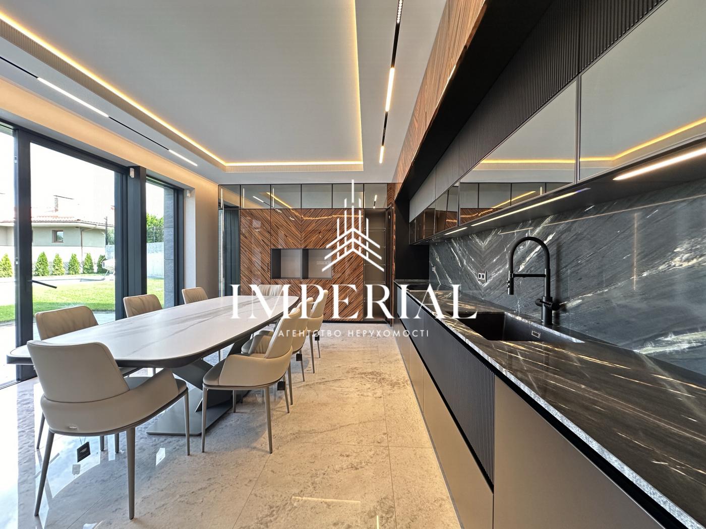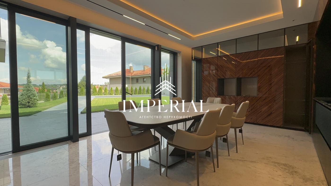Архітектура будинку вражає продуманістю: вишуканий хол, велика вітальня з каміном, кухня-їдальня з вікнами в підлогу та виходом на терасу, звідки відкривається мальовничий краєвид. В інтер’єрі використано ексклюзивні італійські меблі, які підкреслюють елегантність простору. Кухня обладнана технікою преміум-класу від брендів Miele та Liebherr усе для вашого максимального комфорту.