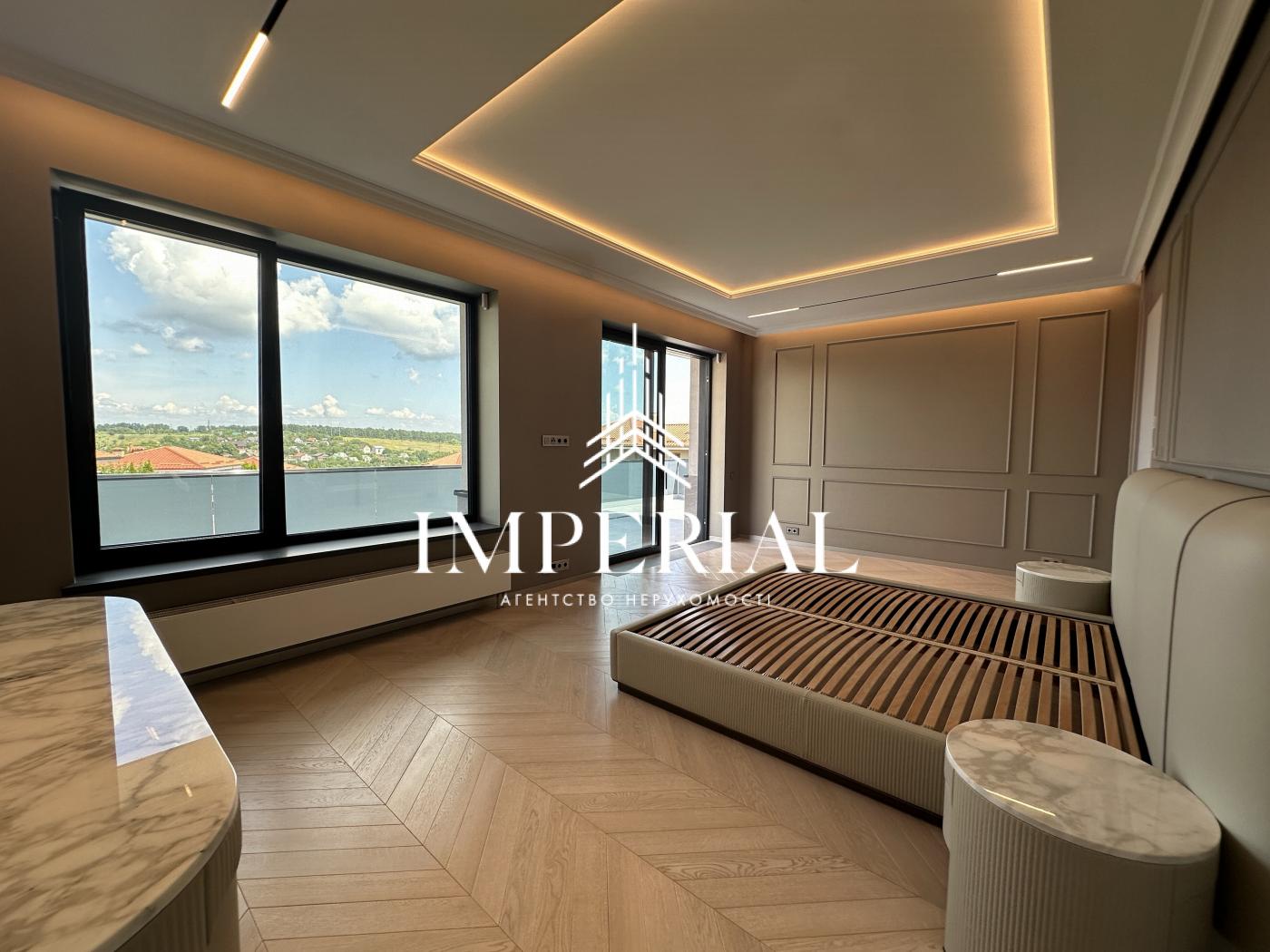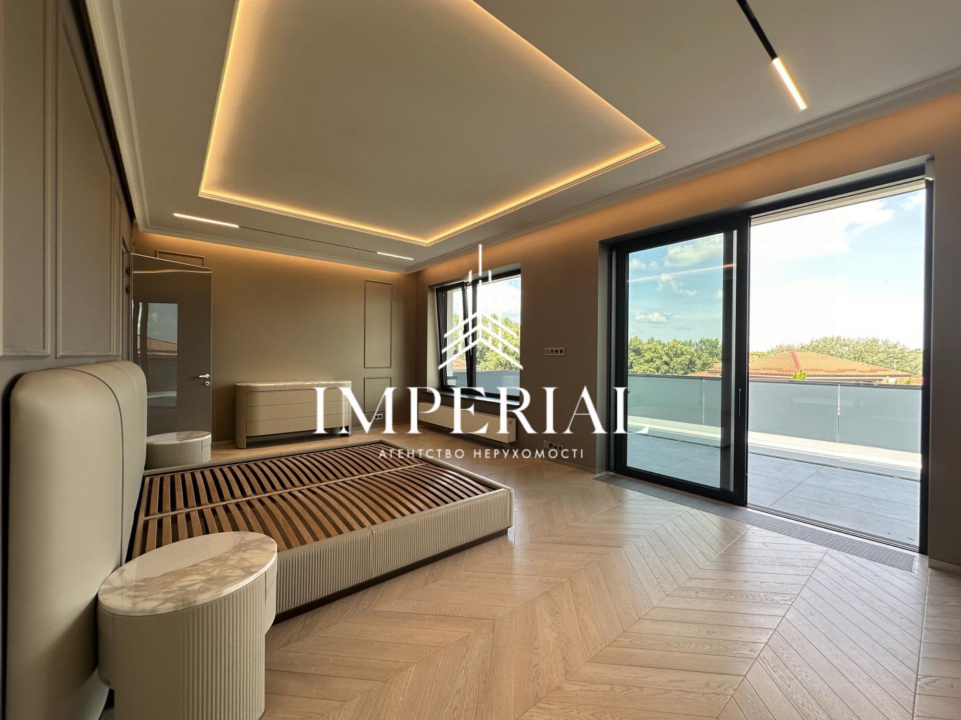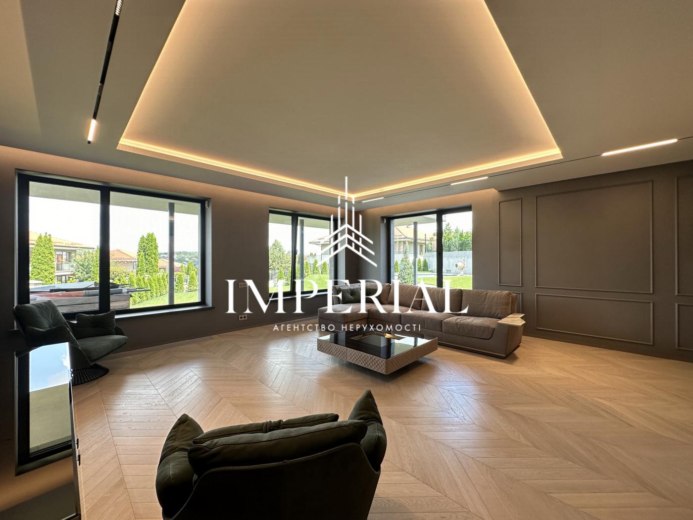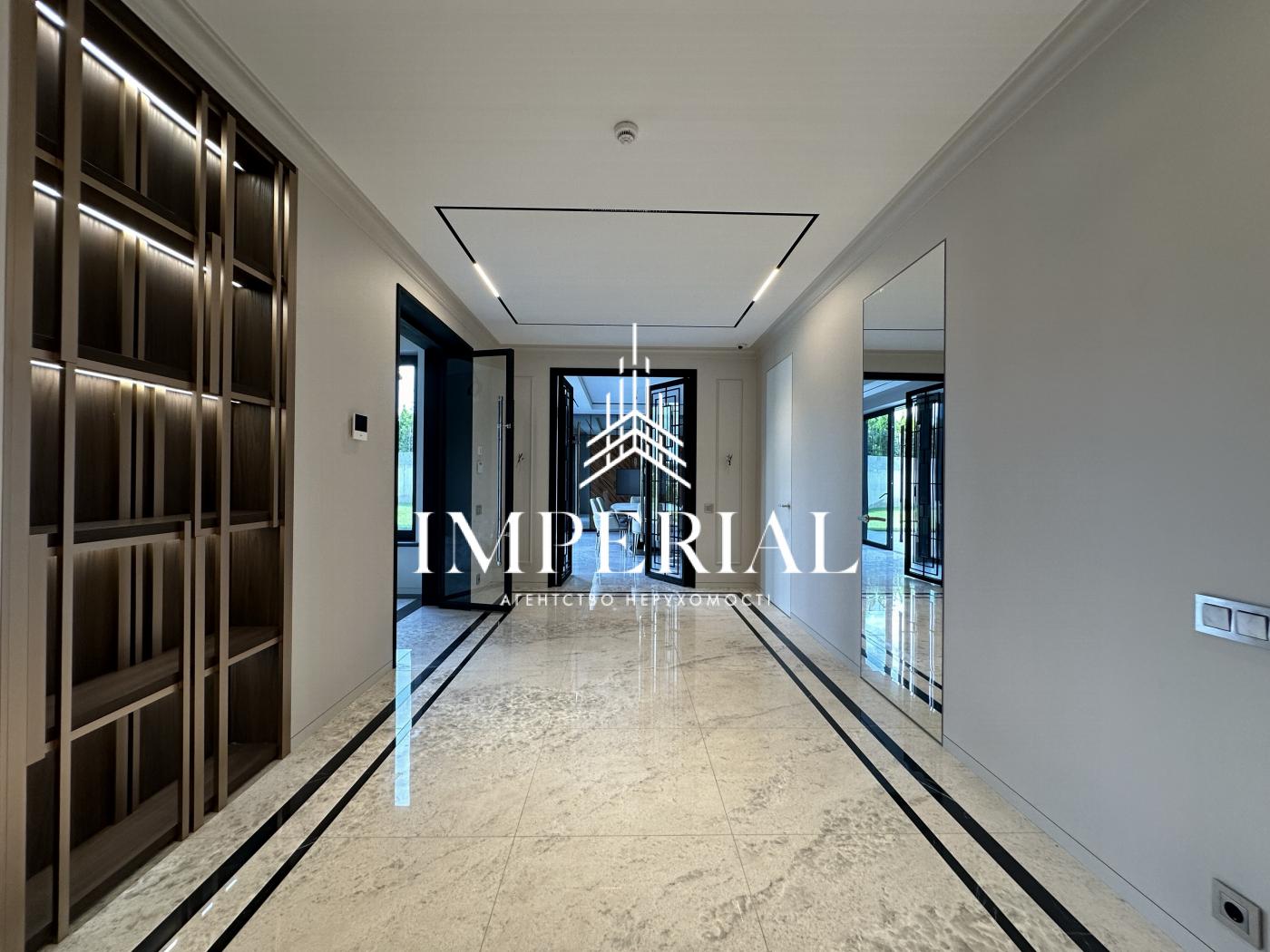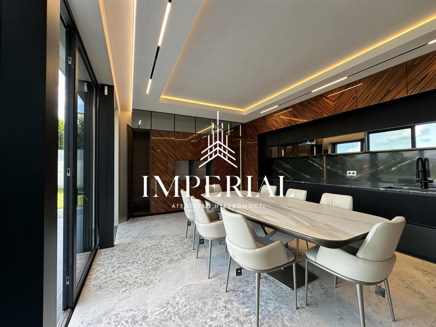 Архітектура будинку вражає продуманістю: вишуканий хол, велика вітальня з каміном, кухня-їдальня з вікнами в підлогу та виходом на терасу, звідки відкривається мальовничий краєвид. В інтер’єрі використано ексклюзивні італійські меблі, які підкреслюють елегантність простору. Кухня обладнана технікою преміум-класу від брендів Miele та Liebherr усе для вашого максимального комфорту.
