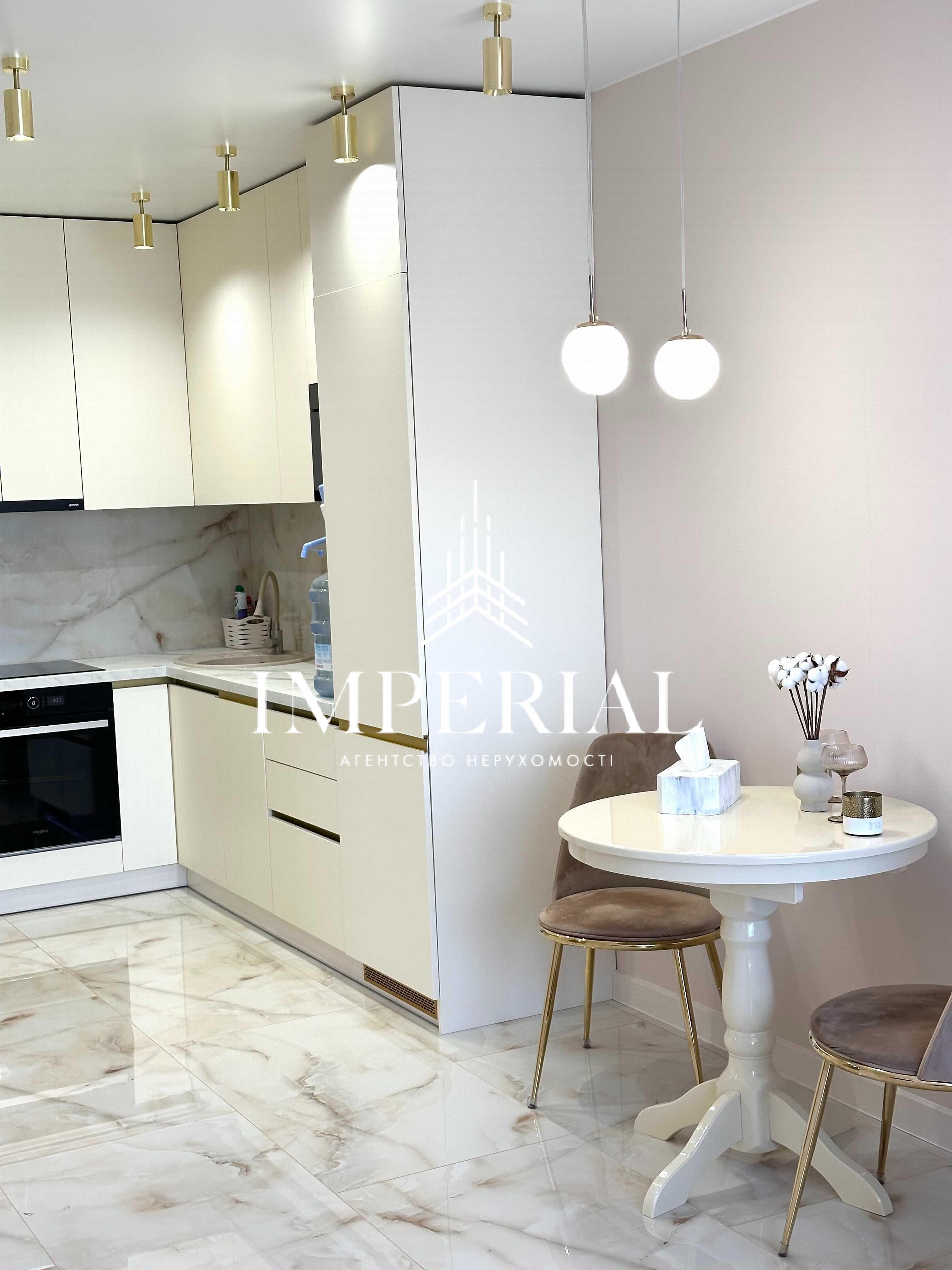 Кухня: вбудована кухня з італійською робочою поверхнею, посудомийна машина Hotpoint-Ariston, двокамерний холодильник Whirlpool, індукційна варильна поверхня та духова шафа Whirlpool, тепла підлога