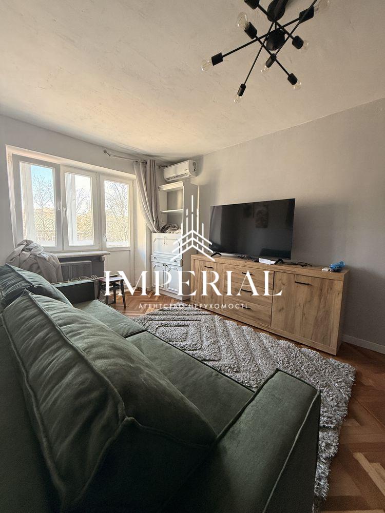 Квартира має продумане та функціональне планування. Світла вітальня облаштована як зона відпочинку з великим телевізором, кондиціонером та новим розкладним диваном. Окрема спальня тиха та затишна, з можливістю облаштування робочого місця або дитячої зони.