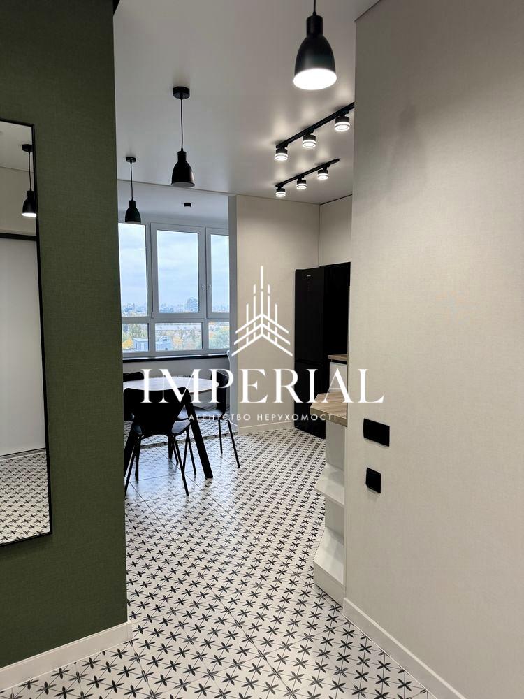Пропонується в довгострокову оренду стильна квартира (42 м²) на 14-му поверсі з захопливим краєвидом на Київ.