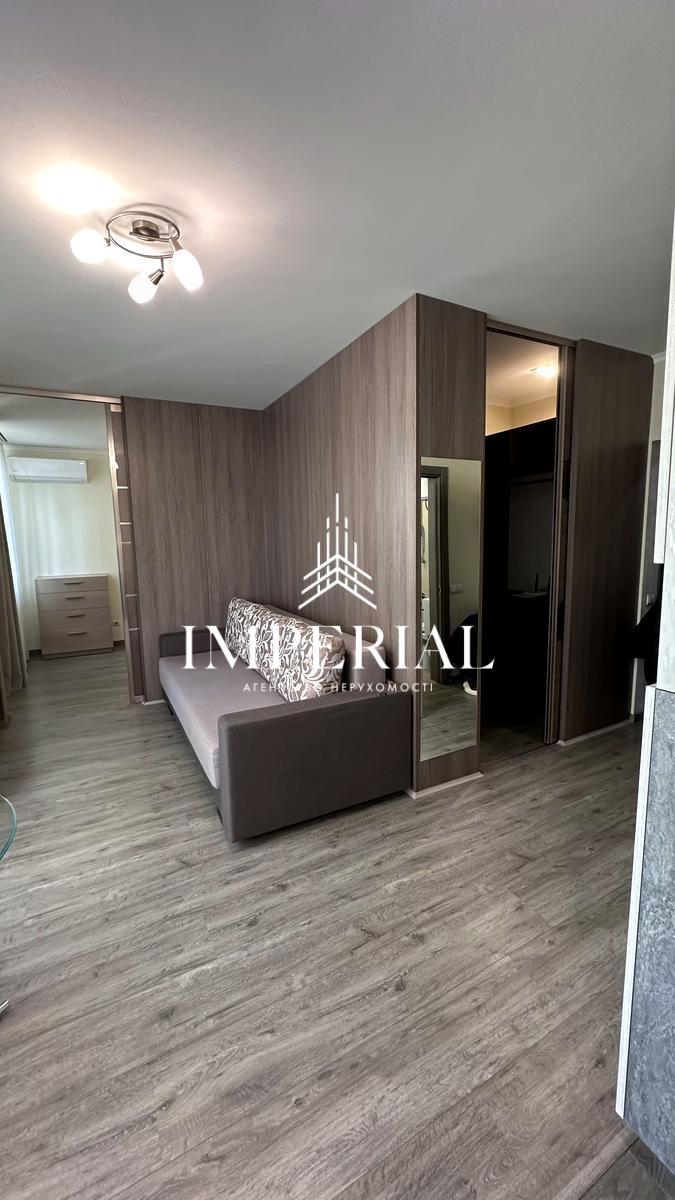 Квартира є 1-но кімнатною і складається з ванної кімнати, гардеробної та кухні студії, де диван розкладається в додаткове спальне місце.