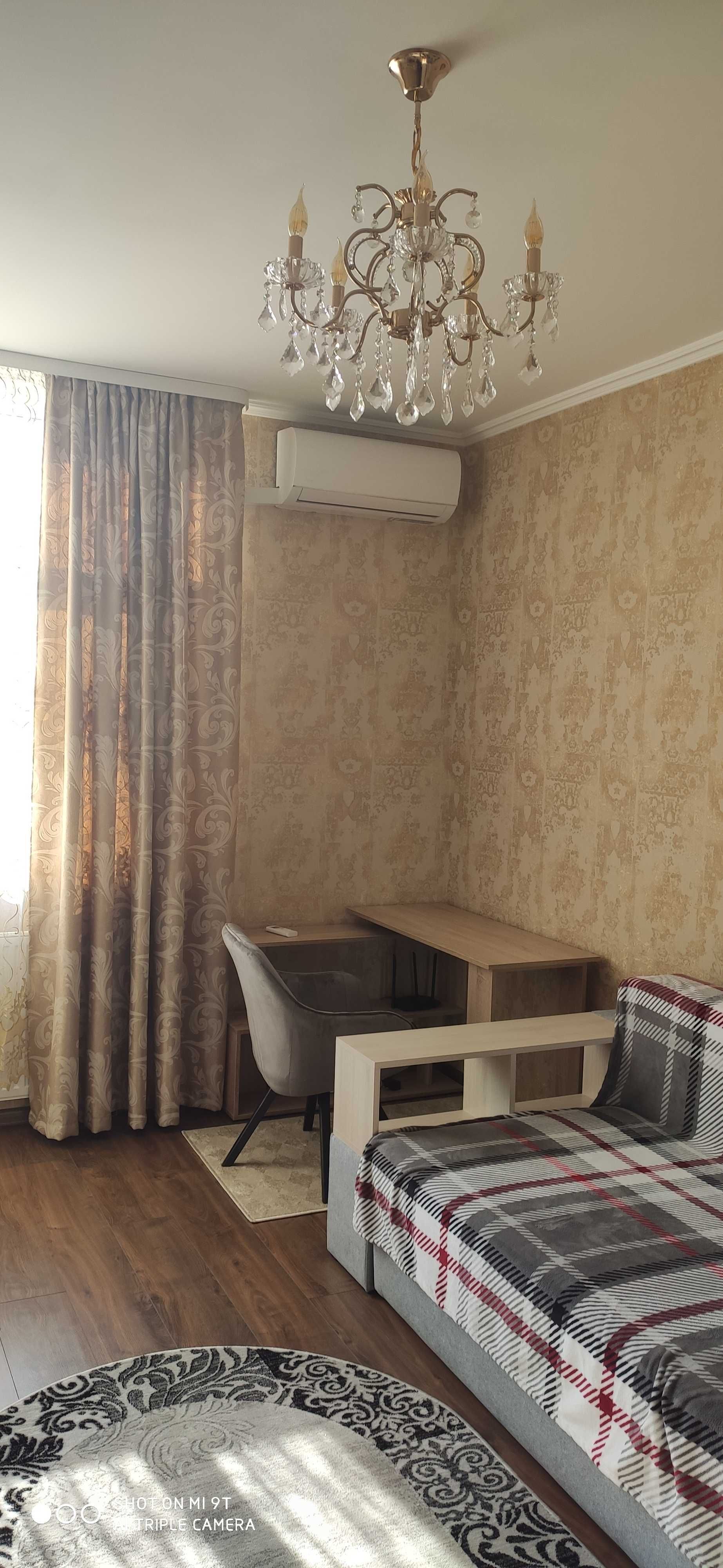 Є великий ортопедичний диван, Smart TV, кондиціонер, бойлер, пральна машина, холодильник, плита зі склокерамічною поверхнею, духова шафа, пилосос, праска, набір посуду та інше.
