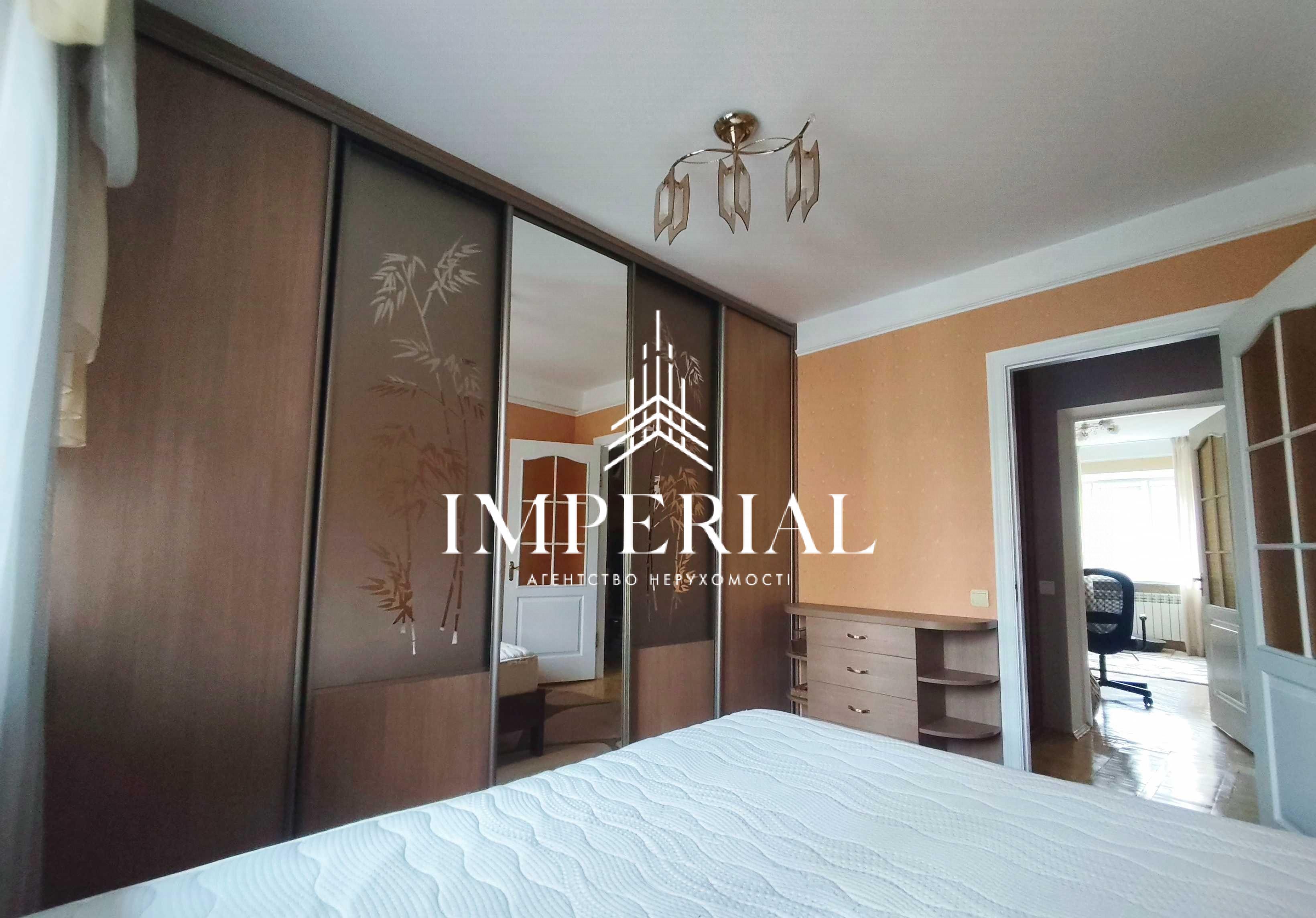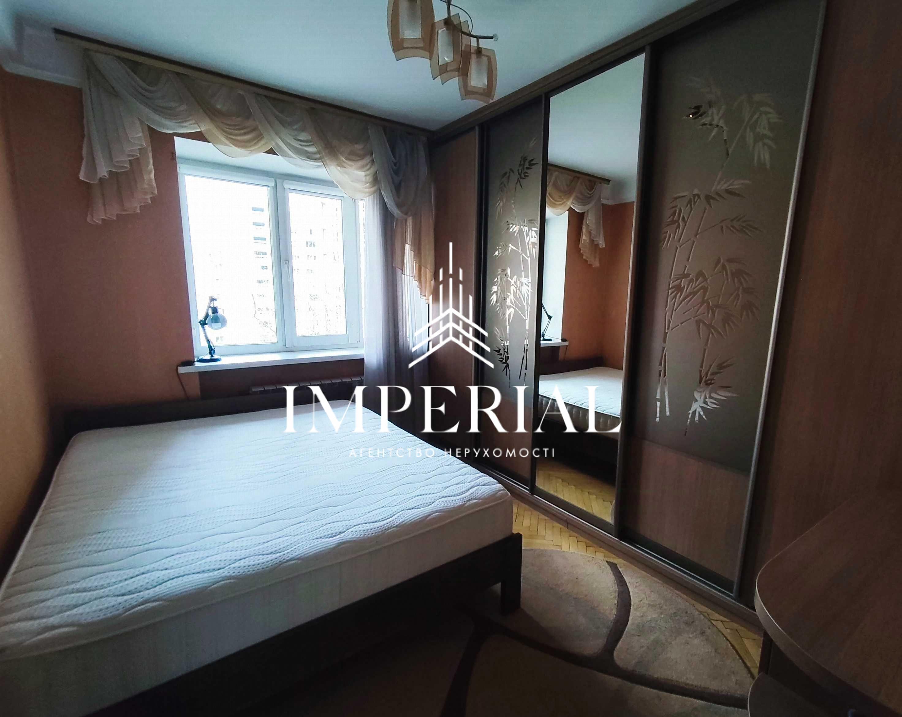 Спальня: велике двоспальне ліжко, тиха сторона (вікна у двір), простора шафа-купе