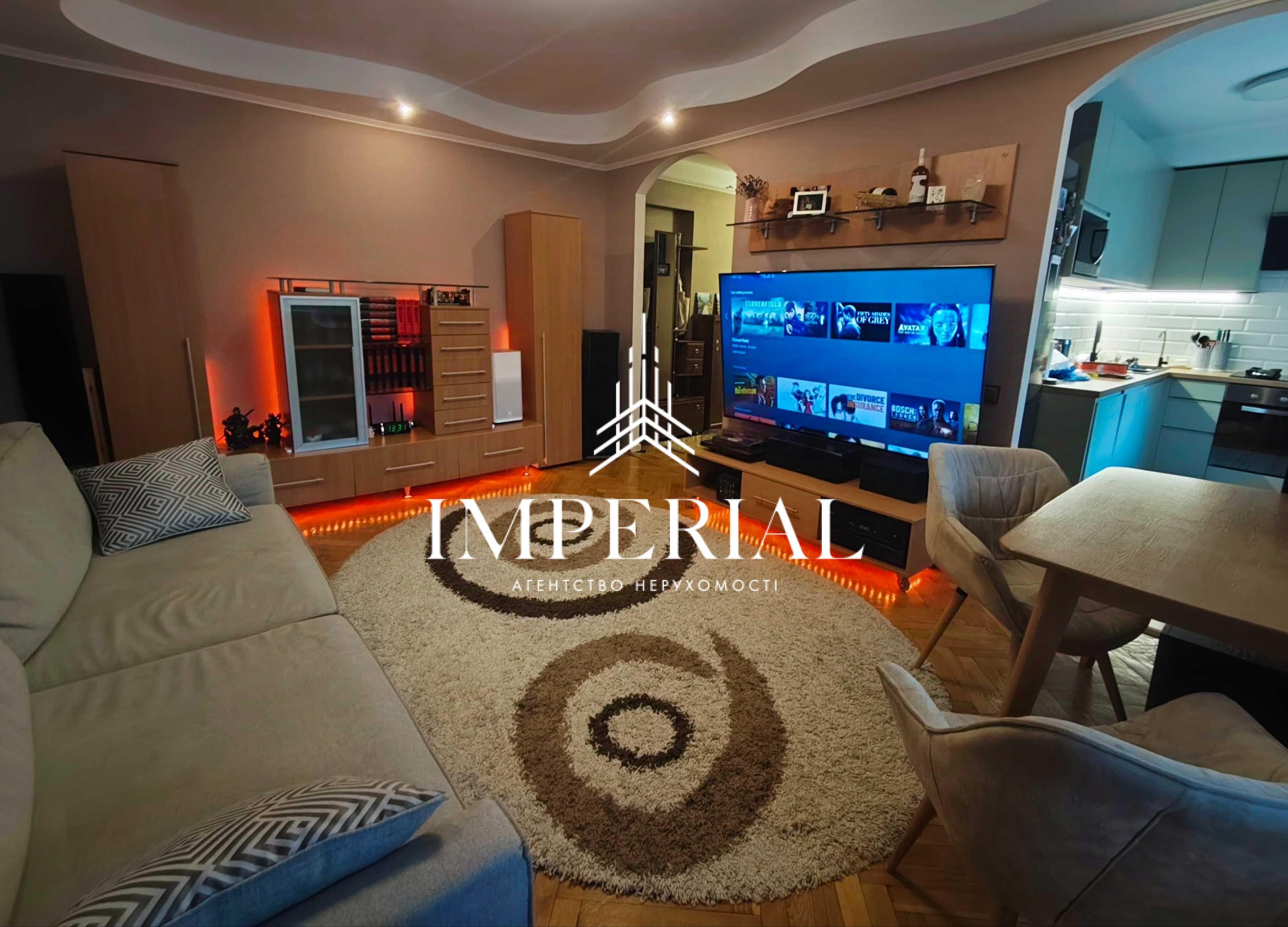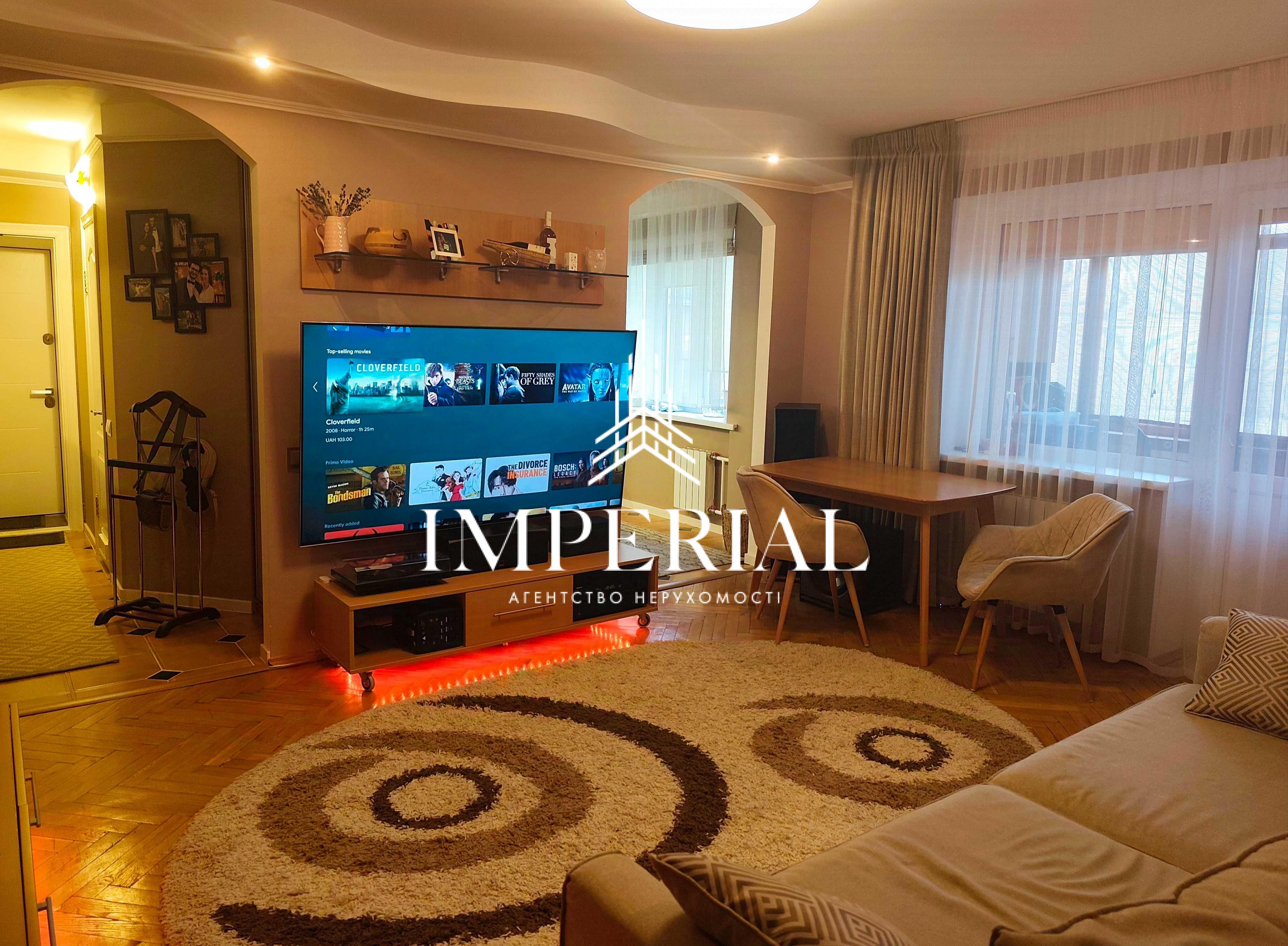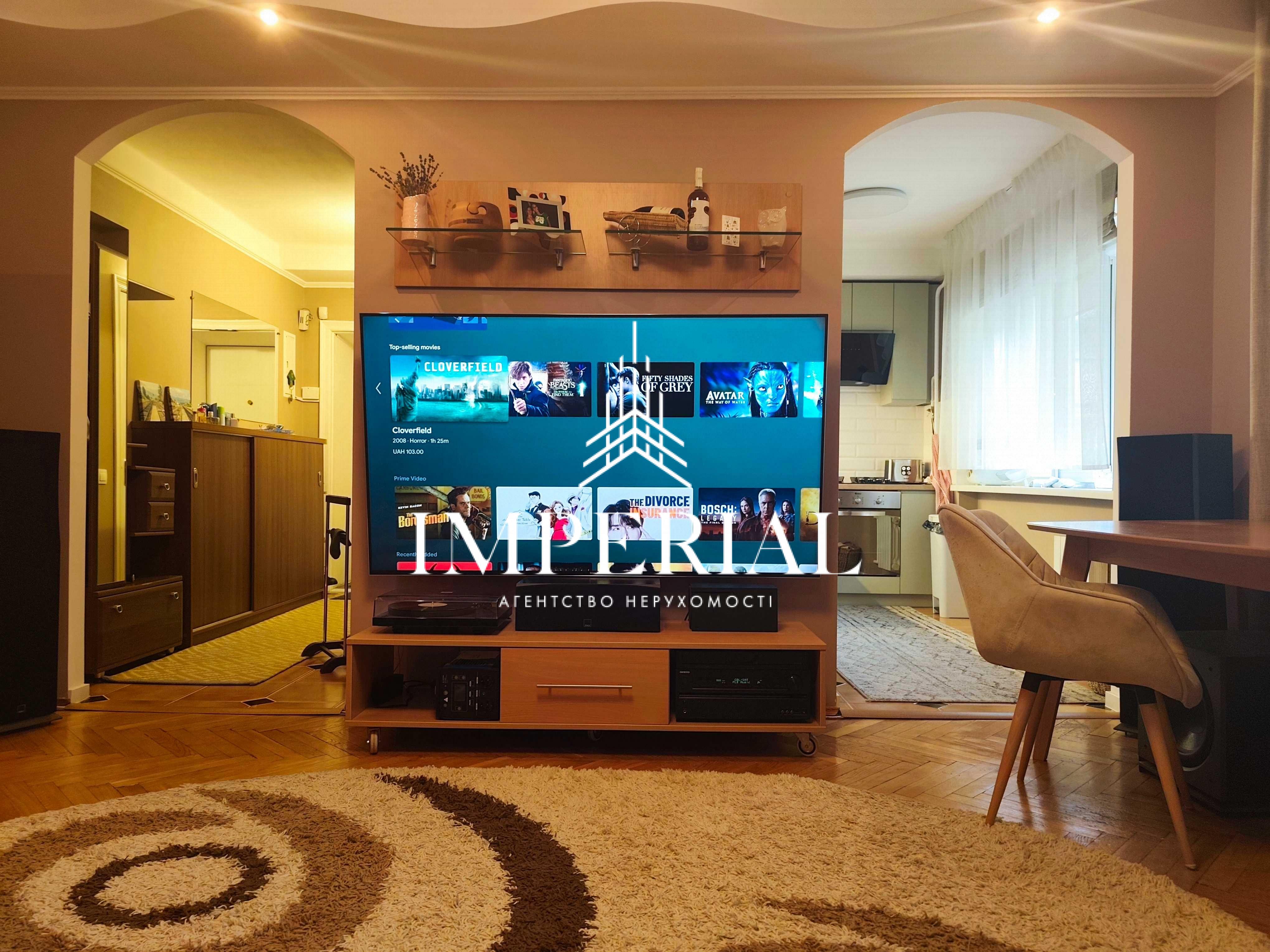 Зал: великий телевізор 85”, аудіосистема, вініловий програвач
