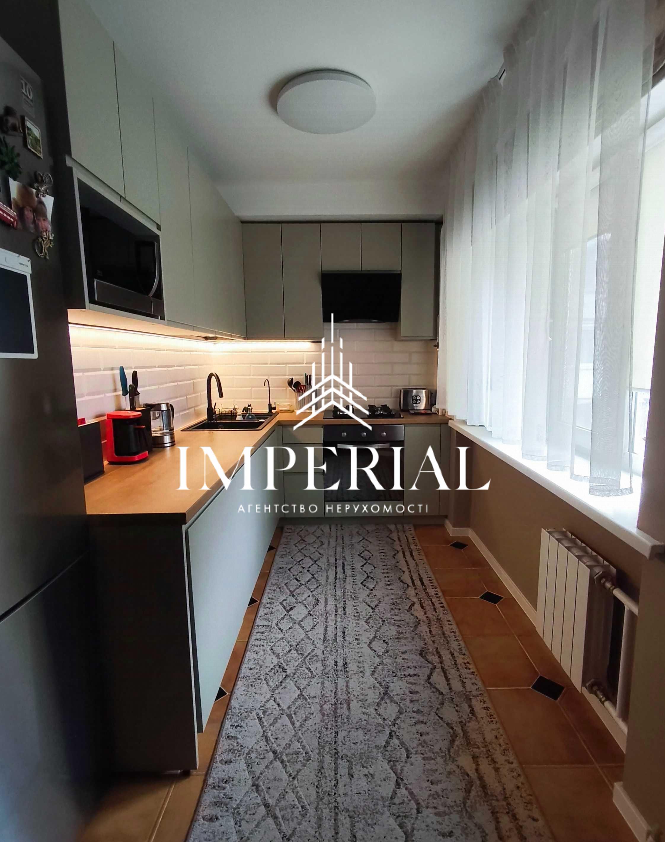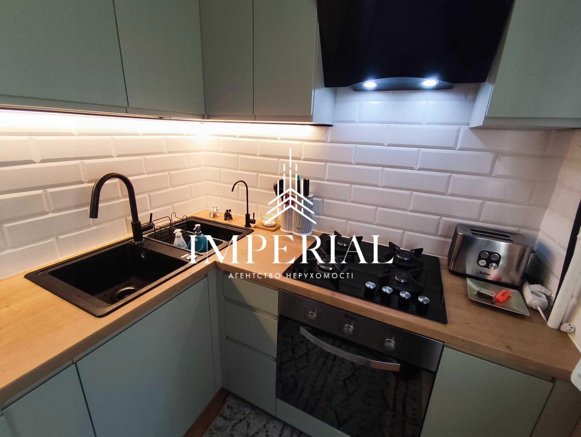 Повністю обладнана сучасною технікою: пральна машина з сушкою, посудомийна машина, подрібнювач відходів, газова плита, електрична духова шафа, мікрохвильова піч, холодильник