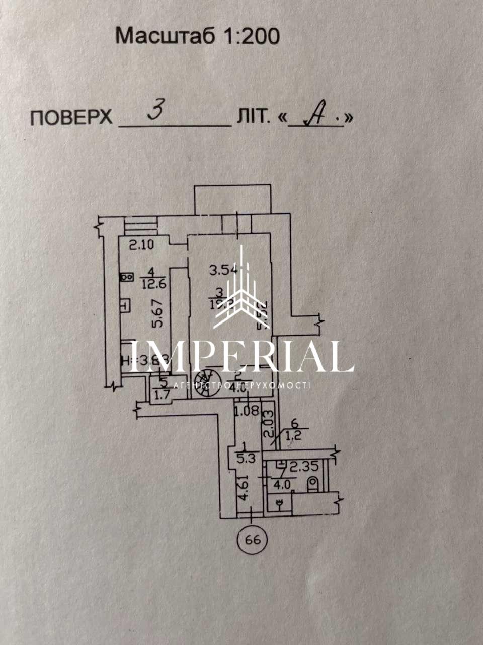 Квартира знаходиться на 3 поверсі 5-поверхового цегляного будинку. Загальна площа становить 54 м², що дозволяє комфортно організувати житловий простір. Кухня — 12,6 м², зручна для щоденного користування та прийому гостей.
