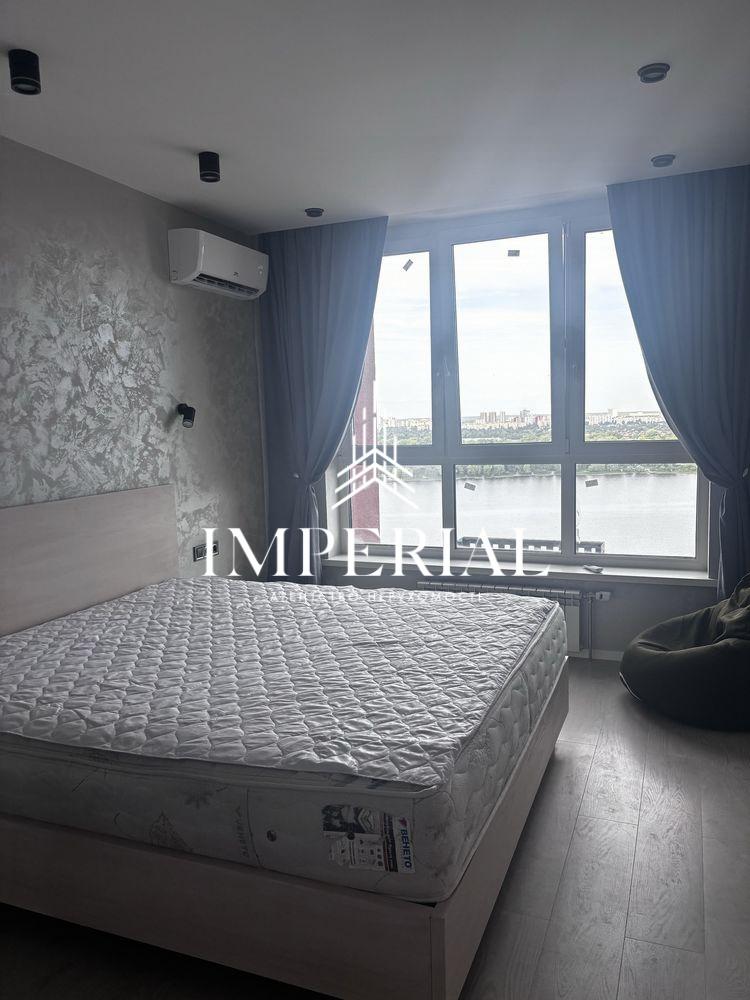 1 спальна кімната з панорамними вікнами та видом на Дніпро